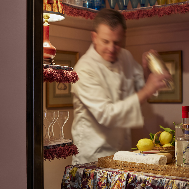 I host bangers in my very small New York City apartment all the time. I turn my coat closet into a bar and hire a bartender for his small stature and ability to hang coats and shake martinis at the same time. I put nibbles on every possible surface and ice champagne in my bath tub. I can pack 40 into my teeny tiny one bedroom and pretend I’m Holly Golightly. The furniture arrangement stays as is, but I use lots of standing champagne buckets to make sure a refill is within an arms length.  If guests linger (they always linger) I order from nearby Simo Pizza, which is the best Neopolitan pizza in the city.