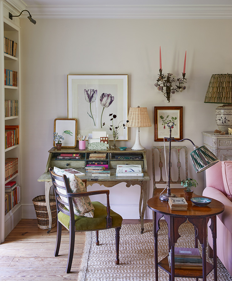 If a house is decorated from one moment in time it will date quickly, but if you have some special antiques, the room has a timeless feel because it literally is that—not of one time.