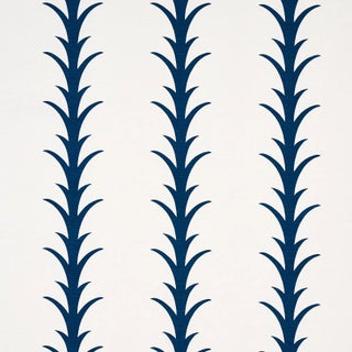 This pattern is a stylized stripe based on a classic acanthus motif. Elegant and airy, Acanthus Stripe is also incredibly easy to use. Also available as wallpaper.