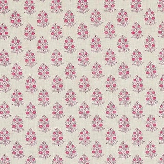 Petite bunches of stylized flowers are meticulously block printed by hand on a soft linen ground, giving each bouquet subtle variations and an artisanal touch.