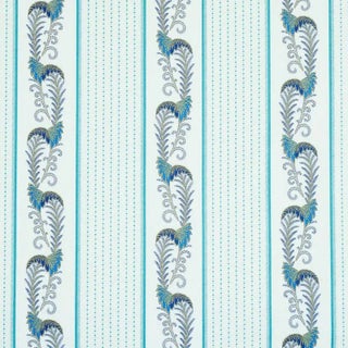 Refined and handsome, this exquisite chintz combines scrolling leaves, feathery paisleys and other delicate flourishes in a beautiful, useful stripe.