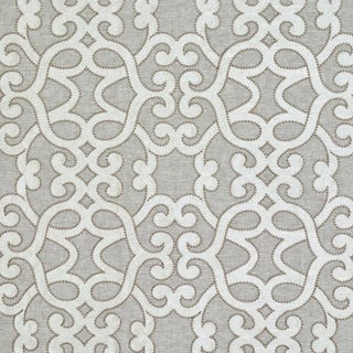 This graphic, scrolling design derives from ornamental ironwork patterns that are simplified and reinterpreted in layered embroidery stitching on a …