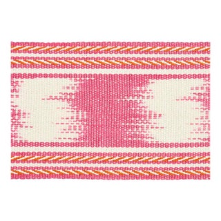 A warp-printed ikat woven by hand, this layered, pattern-on-pattern tape features a striped edging and incredible dimension.