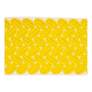 An exuberant embroidered tape with a leaf-like pattern rendered in satin stitching; inspired by a document in our archives.