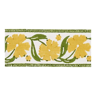 This fresh floral pattern, created by our in-house design studio, is block printed by hand on cotton-linen union cloth to create a tape that has a lovely charm and artisanal look.