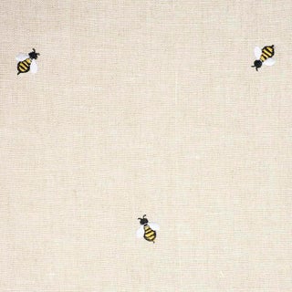 Buzzing with style, this sweet, non-directional design features diminutive honey bees delicately embroidered on a linen ground.