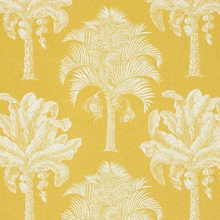 A silhouette print of magnificent palms, this large-scale pattern offers a big dose of exotic flair. It's that touch of fun and fabulous that every room needs. Also a wallpaper. Sold as a 2-yard minimum.