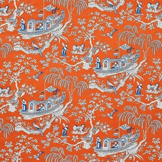 This 18th-century Chinoiserie pattern shares the spirit of a toile, and its modest scale matches its delicate, fanciful quality. Depicting pastoral scenes from the East, the many varieties of trees and flag-festooned boats are particularly evocative.