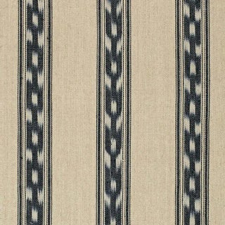 This pattern features a distinctive ikat stripe on a solid linen-jute ground. Made using an artisanal weaving technique, subtle variations are part of its inherent natural beauty.