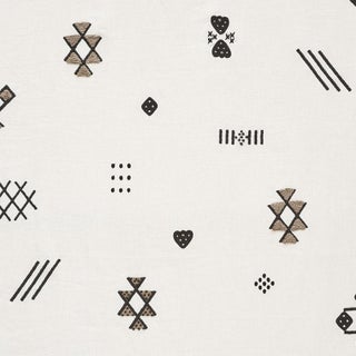 This unique casement fabric features a full-width layout of mystical free-floating, embroidered motifs rendered in French knots, boucle, chain and satin stitches.