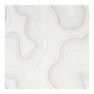 With irregular, curved forms, this abstract, undulating pattern is embroidered on a sheer linen ground and embellished with delicate beading.