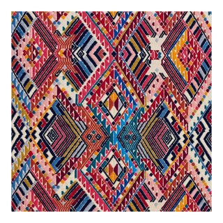This extraordinary 39”-long brocade panel is hand-woven and embroidered on a backstrap loom by master Maya women weavers in Guatemala. Slight variations in size, pattern and color are part of this singular textile’s journey. Memos of the brocades are not currently available. Please download a digital memo or contact your sales rep for more information