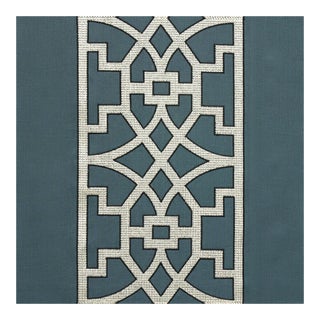 Traditional chinoiserie fretwork inspired this embroidered linen stripe. Subtle variations are part of its inherent natural beauty.