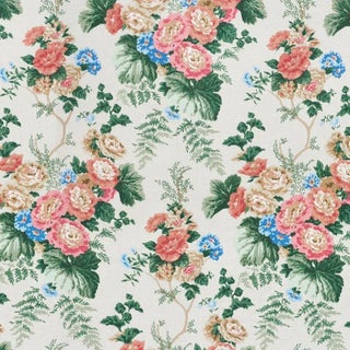 Originally printed in the 1940s, these charming, multi-hued hollyhocks are printed on a chunky linen ground with slightly overlapping colors for a loose, hand-blocked effect. Sold as a 2-yard minimum.