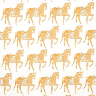 Whimsical horses-inspired by a rare Rajasthani breed-parade across this captivating fabric. The pattern captures the handmade appeal of a traditional …