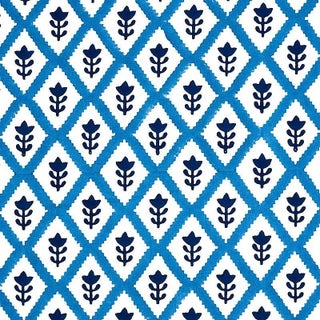 A delightful small-scale floral-and-diamond pattern, hand-block printed in India by master craftsmen.