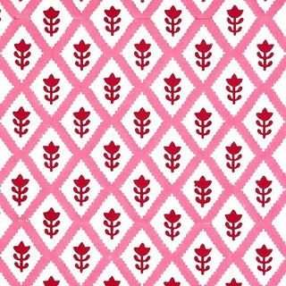 A delightful small-scale floral-and-diamond pattern, hand-block printed in India by master craftsmen.