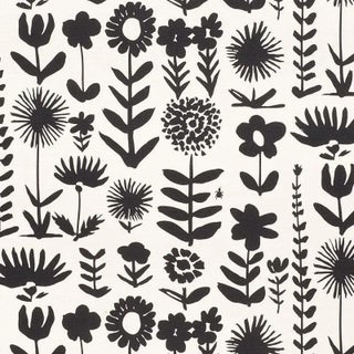 With its stylized flowers silhouetted against a solid background, this mod botanical print exemplifies Vera Neumann's affinity for nature and bold, graphic patterns. Also sold as a wallpaper. Sold as a 2-yard minimum.