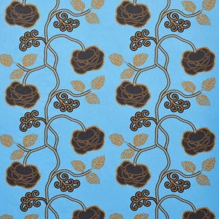 Neisha Crosland looked to far-ranging influences-luscious tropical mangosteens, the elaborate gold-outlined flora on a 16th-century English needlework bed hanging-for this opulent botanical chintz, with its stylized blossoms and curlicued leaves climbing upward like a luxuriant tree of life. Also available as a wallcovering.