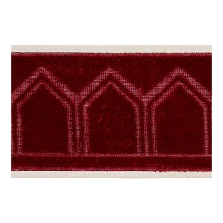This luxe cut-velvet tape features a unique, geometric pattern derived from Ottoman architecture. It's a sumptuous and substantial trim for upholstery, pillows or curtain panels.