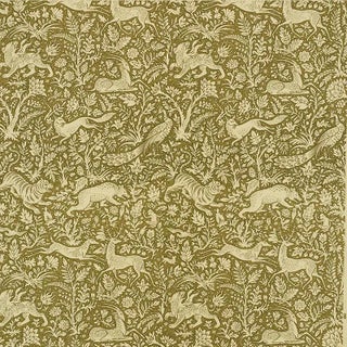 A veritable bestiary of stylized animals, this linen and cotton blend recalls a medieval tapestry with elongated forms of fauna made into patterns. Tigers and bears, stags and does, peacocks and foxes, rams and rabbits all cavort among fantastical flora.