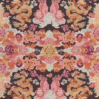 Foo dogs and fire-breathing dragons animate this fantastic, symmetrical print on a linen ground. It's an adventurous and exotic pattern …