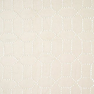 Hand-embroidered chenille French knots form a delicate and perfectly imperfect geometric pattern on a silky cotton-linen ground.