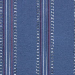 Mary McDonald was inspired by her love of neoclassical and Napoleonic motifs when she created Greco Stripe. This woven multi width cotton stripe embellished with an embroidered dentil design is a chic, versatile mid-scale fabric that is perfect for upholstery, window treatments or pillows. Also available as wallpaper.