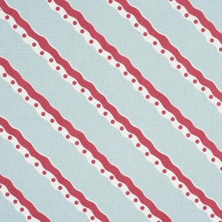 Rousseau Stripe fabric is simple, charming and hard to resist. With its wavy multi-width vertical stripes and rhythmic dots printed on the bias, this graphic medium-scale design adds a lively dimension to pillows, window treatments and upholstered pieces. Also available as a wallpaper.