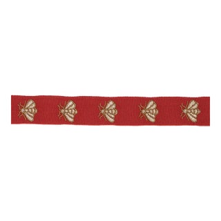 Hubert's Bees Tape is a chic and charming, embroidered trim inspired by a classic Napoleonic symbol. With delicate bees satin stitched in metallic thread, this trim adds a shimmer of gold and Francophile style to upholstered pieces, pillows or window treatments. For a coordinating wallpaper, see Hubert's Bees wallpaper.