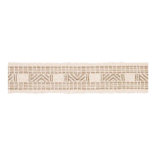 Inspired by an antique blanket from India, Nael Linen Cotton Tape is made of stiff, irregular yarns and woven on a jacquard loom. With its textural, embroidered look and subtle strié effect, this trim adds pattern, dimension and a rustic, elegant touch to upholstered pieces, window treatments and pillows.