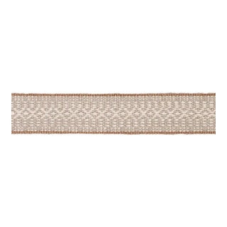 Inspired by West African tribal motifs, Helena Linen Cotton Tape is an artisanal trim that is made of hand dyed yarns and woven on a traditional loom. An intricate dobby pattern embroidered in coarse cotton on a fine linen ground with a subtle strié and pop of color along the selvedge, this tape adds texture and interest to curtain panels, Roman shades or pillows.