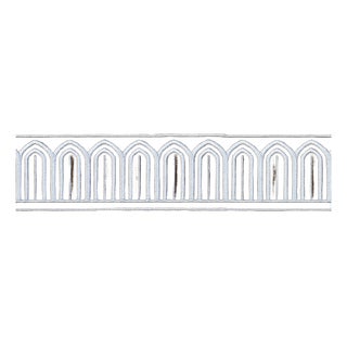 Designed by Miles Redd, Arches Embroidered Tape in sky on brown is a stylized scallop trim that boasts undeniable architectural …