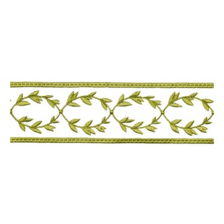 Created in collaboration with Paloma Contreras, Maison Vine derives its intertwined laurel motif from classic symbols of victory. A delicate feminine design embroidered on a cotton-linen ground, this timeless trim adds a triumphant finishing touch to upholstery, window treatments, or pillows.