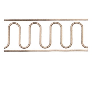 Created in collaboration with Paloma Contreras, Royère Scroll is a scrolling embroidered design on a wide cotton-canvas tape. Inspired by French mid-20th-century designer Jean Royère and his sculptural metalwork, this chic, playful trim works beautifully in modern and traditional settings.