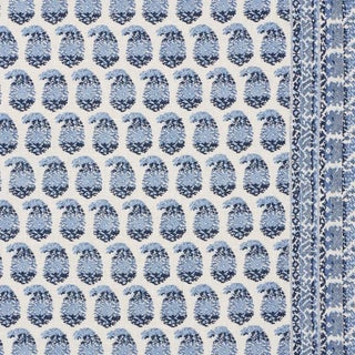 Created in collaboration with Rita Konig, Terry derives its rich colors, delicate paisley motif, and intricate border element from an antique document. Printed on a soft 100% linen ground with painstaking attention to detail, this versatile medium-scale fabric design plays well with others—especially florals—and can be used in myriad ways, from cozy accent pillows to wall upholstery. The border measures 3.9 inches wide.