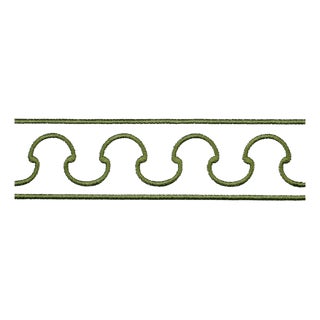 Created in collaboration with Paloma Contreras, Grenelle was inspired by Parisian ironwork. A unique notched-wave motif embroidered on a cotton canvas ground, this eye-catching trim adds a crisp, dressy touch to upholstery, window treatments, or pillows.