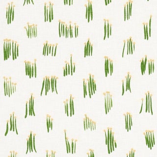 Created in collaboration with Studio Bon and screen-printed by hand, Meadow Button is a loose, small-scale floral fabric with a charming painterly aesthetic. Swaying bunches of wildflowers are topped with hand-tied French knots to create a dreamy, three-dimensional, allover pattern that is perfection for a headboard or pillows.
