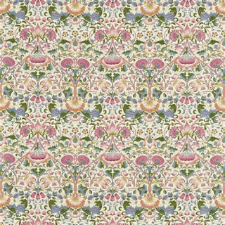 Quintessentially Morris scrolling flowers and foliage cover this 100% cotton upholstery fabric design from 1883. Originally discharge printed at Merton Abbey great care has been taken to maintain the marks textures and colours of the hand block-printed fabric. It is printed in two original colourways along with three modern options and suitable for blinds cushions drapes and upholstery.