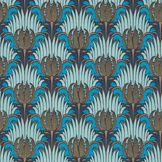 Be honest did you spot the birds at first glance hidden among the foliage? The Tulip & Bird pattern whose form bears all the fresh simplicity of a classic Voysey here undertakes a total colour transformation. This intriguing pattern now features deep gem-like tones reminiscent of the ceramic work of which C.F.A. Voysey was also a noted designer.