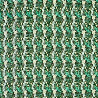 Ben Pentreath has taken the distinctive daffodils that grace this design and pumped up the colour! Created by John Henry Dearle c.1891 the original drawing survives and can be seen at the William Morris Gallery in London. Scaled down slightly and produced on a cotton/linen cloth the Dark Olive colourway is utterly magical with its bright almost electric blue ground and eye-catching teal detail. Archive is a much softer choice retaining its original colours but with a slightly intensified vibrancy.