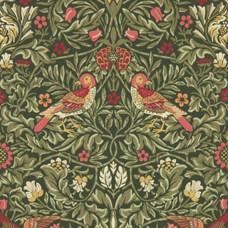 Translated on to wallpaper for the first time Bird is a serene pattern of paired birds alternating between perching and flight. Available in four rich colour stories bursts of saturated hues make Bird an incredibly striking addition to any wall. Inspired by an 1878 tapestry creation by William Morris it was the design of choice to adorn his own drawing room in Kelmscott House.