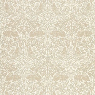 This charming wallpaper from 1882 has been reproduced to allow the application of special printing techniques including grit and mica giving relief and texture to this two-colour wallpaper design. A fabric of the same name is also available.