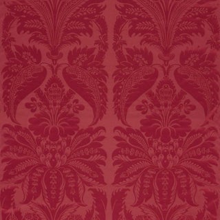 Clandon is the epitome of a grand damask. An impressive, large-scale design in silk cotton, Clandon engulfs a room with its proportion and magnificent flowering flock. Zoffany's archive document dates back to the late 15th/early 16th century, when this design was originally produced in silk on a narrow loom and featured as a block printed flock wallpaper at Clandon Park House in 1735, hence its regal name. This damask has appeared in many guises in our archive, each generation adding its own take on the design.