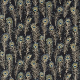 Stunning painted peacock feathers printed in luminous colours reflect the iridescent quality of this flamboyant creature. The separate motifs are arranged with gentle overlaps to give an informal design that is both serene and theatrical - ideal for living spaces. Team with the wallpaper of the same name.