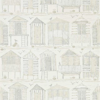 This wallpaper featuring iconic beach huts in all their glorious shapes and sizes help us reminisce about childhood days spent at the British seaside. Originally lino-printed and drawn over for added definition this design is available in relaxing colourways and as a fabric of the same name.