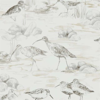 A captivating wallpaper design featuring faithful interpretations of wading birds basking in the gentle sun creating an all-over scenic design. Team with the fabric of the same name.