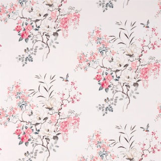 Creating the feeling of being emerged in a fantasy garden this large-scale 100% cotton fabric features magnolia flowers cherry blossom and wisteria. Brightly coloured birds and bumble bees give the design flashes of colour.