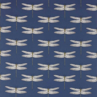 Palmetto Fabrics - Demoiselle. An up-scaled delicately drawn dragonfly motif is placed on this 100% cotton fabric in dramatic colourways. Use to add an element of the unforgettable. A wallpaper of the same name is also available.