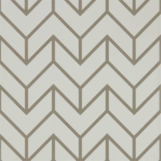 A striking wallpaper from Harlequin Momentum showcasing graphic metallic lines in a repeating geometric tile effect.